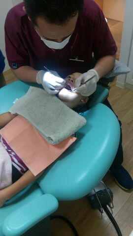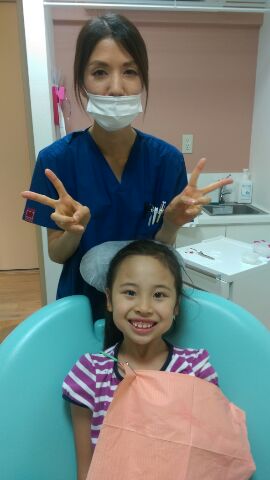 先生がお口の中をチェックした後は、衛生士のお姉さんがハミガキをしてフッ素を塗ってくれます☆